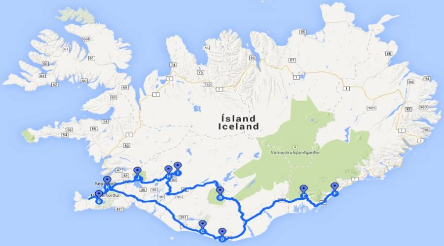 Lungo il tragitto ammireremo il canyon di Eldgjá che significa "canyon di fuoco" la gola di origine vulcanica più grande del mondo con i suoi 270 metri di profondità e 600 metri di larghezza nella parte più profonda: nella cascata di Ofaerofoss si possono vedere i resti del ponte naturale che l'attraversava e che precipitò durante il disgelo nel 1993. Arrivati a Skaftafell realizzeremo un breve trekking che, dipendendo dalle condizioni, durerà dalle 2 alle 3 ore dove potremo contemplare le viste più spettacolari del ghiacciaio Vatnajokull e le sue lingue di ghiaccio. Dal belvedere di Sjonarnipa potremo inoltre ammirare la cima del Hvannadalshnukur, che con i suoi 2.111 metri di altezza è la montagna più alta di tutta l’isola e la cima dello Snaebreid che con i suoi 2.041 metri di altezza si piazza invece al 3° posto. Finiremo il nostro trekking nella famosa cascata di Svartifoss conosciuta per le sue particolarissime colonne di basalto da cui hanno tratto ispirazione nella costruzione della cattedrale di Reykjavik.